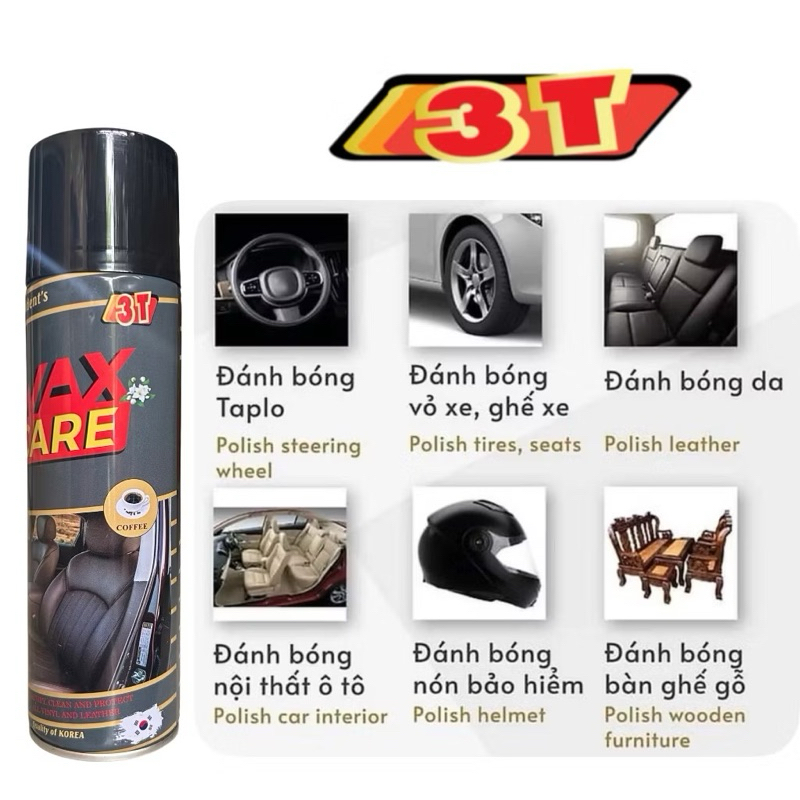 Chai dầu xịt bóng da Waxcare 3T là sản phẩm đánh bóng đa năng dạng xịt tiện lợi, chuyên dùng để làm sạch, dưỡng và bảo vệ các bề mặt da, nhựa, gỗ và cao su. Sản phẩm đặc biệt phù hợp cho nội thất ô tô như ghế da, taplo, cửa xe, giúp xe luôn sáng bóng như mới.